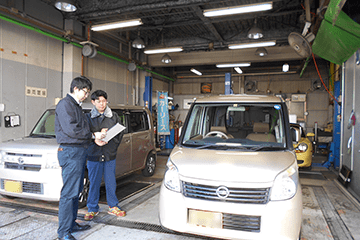 サービススタッフによる点検整備が完了すると、お預かり時同様、自動車検査員の資格を持った検査員が、整備内容の確認と保安基準に適合しているかの検査を行います。整備担当者と検査資格者を明確に分けることで、お客様の愛車の安全を保っています。