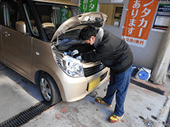 車検時期が近づくと、スタッフより車検入庫のご案内をいたします。工場の空き状況やお客様のスケジュールに合わせてご来店頂いたり、ご都合の悪いお客様には別途引き取りをさせていただくなどして、おクルマをお預かりいたします。毎日の通勤通学やお子様の送り迎え等で代わりのおクルマが必要なお客様には、無料で代車の貸し出しを行っています。お申し込み頂く際に、代車の希望をお申し出ください。